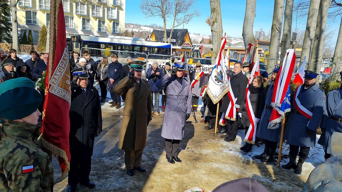 Pod pomnik przybyły poczty sztandarowe, a także przedstawiciele zakopiańskich samorządów, szkół i przedstawiciele służb mundurowych. W trakcie uroczystości odśpiewany został hymn państwowy, po którym wspomniano bohaterską postawę i tragiczne losy poległych Żołnierzy. „Wszyscy chcą, aby pamięć po poległych nie zaginęła. 1 marca obchodzimy Dzień Żołnierzy Niezłomnych. Tych, którzy w najtrudniejszych okolicznościach podjęli walkę o wolność, o niepodległość i suwerenność Polski” - mówił Piotr Bąk – starosta tatrzański. Uroczystość zakończyła się złożeniem wiązanek kwiatów. Tatrzańskich policjantów reprezentował Komendant Powiatowy Policji inspektor Piotr Dziekanowski wraz z pocztem sztandarowym.