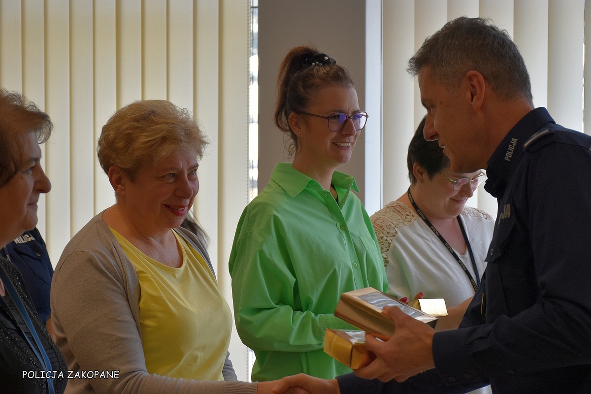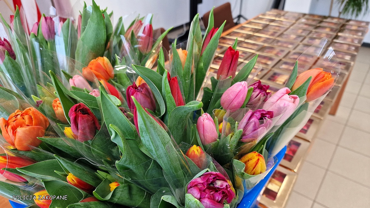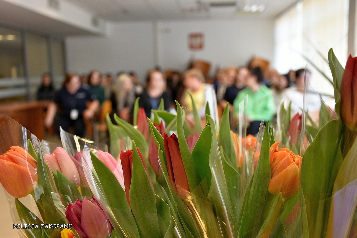 Panowie policjanci Komendy Powiatowej Policji w Zakopanem, dzisiaj przed południem zorganizowali dla wszystkich pań z tatrzańskiej policji wymarzony Dzień Kobiet. Piękniejsza strona zakopiańskiej komendy policji została zaproszona na salę narad, gdzie z okazji święta kobiet złożył najlepsze życzenia Pan Komendant Powiatowy Policji w Zakopanem inspektor Piotr Dziekanowski. Kobiety obdarowane zostały kwiatami oraz pysznymi pralinami. Nie zabrakło wielu miłych komentarzy, ponieważ udało nam się ponownie nasze panie miło zaskoczyć.