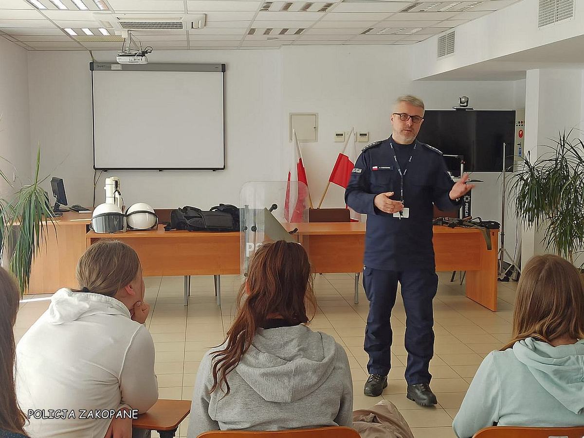 PROMOCJA ZAWODU POLICJANTA WŚRÓD MŁODZIEŻY – LICEALIŚCI Z WIZYTĄ W KOMENDZIE POWIATOWEJ POLICJI W ZAKOPANEM