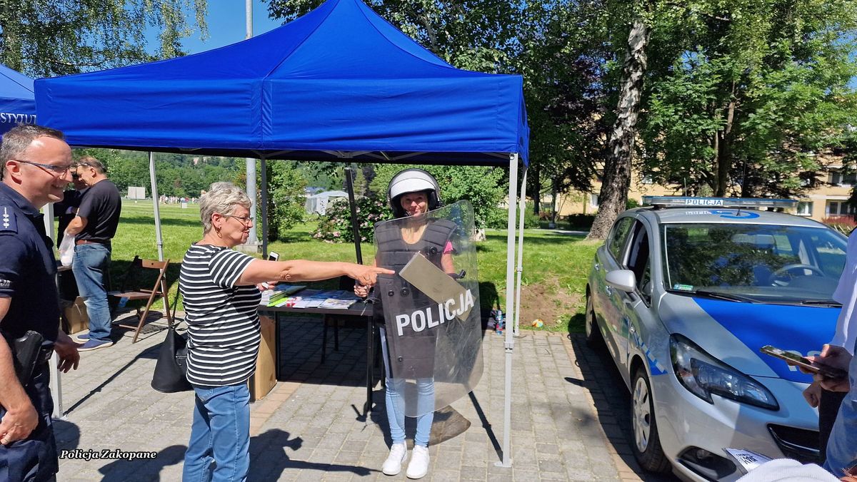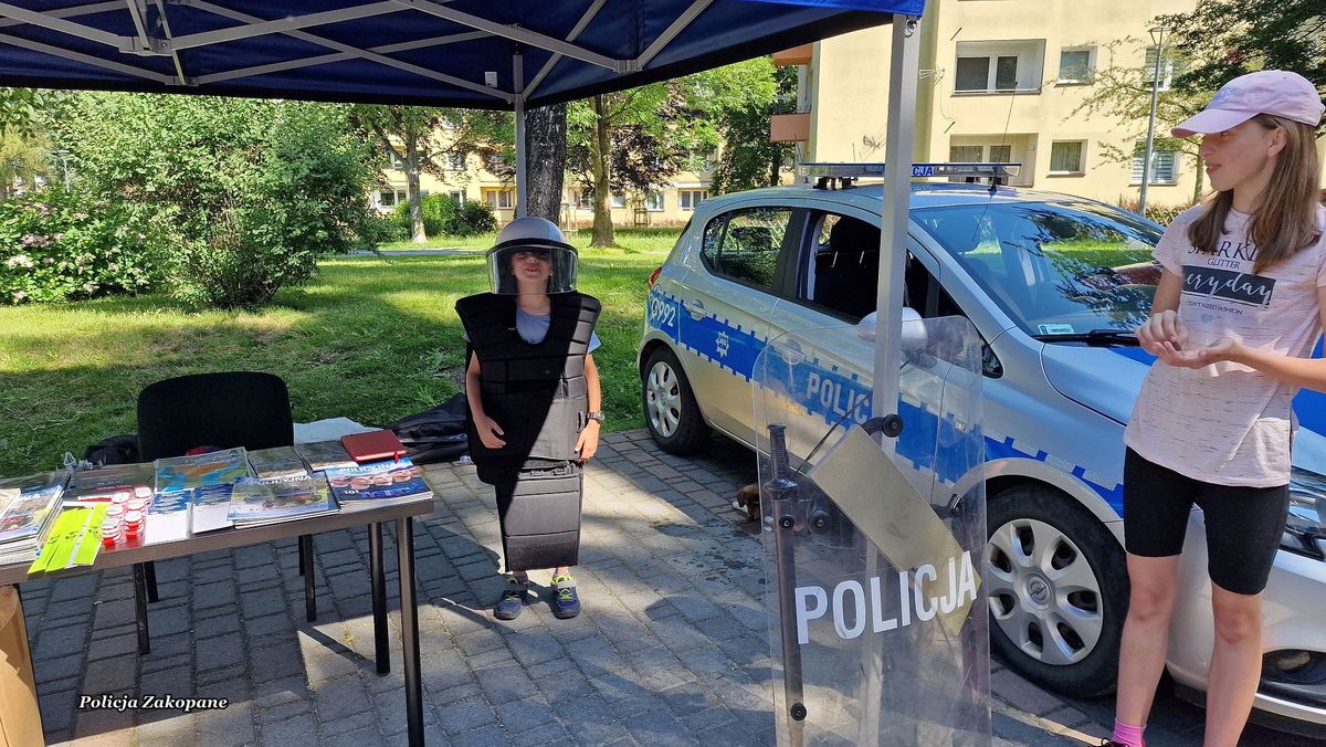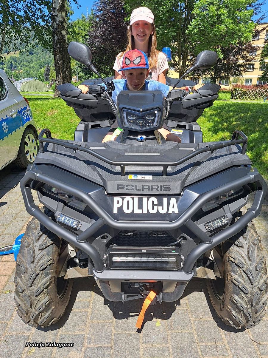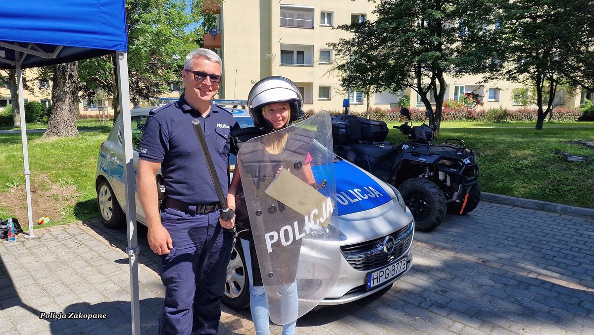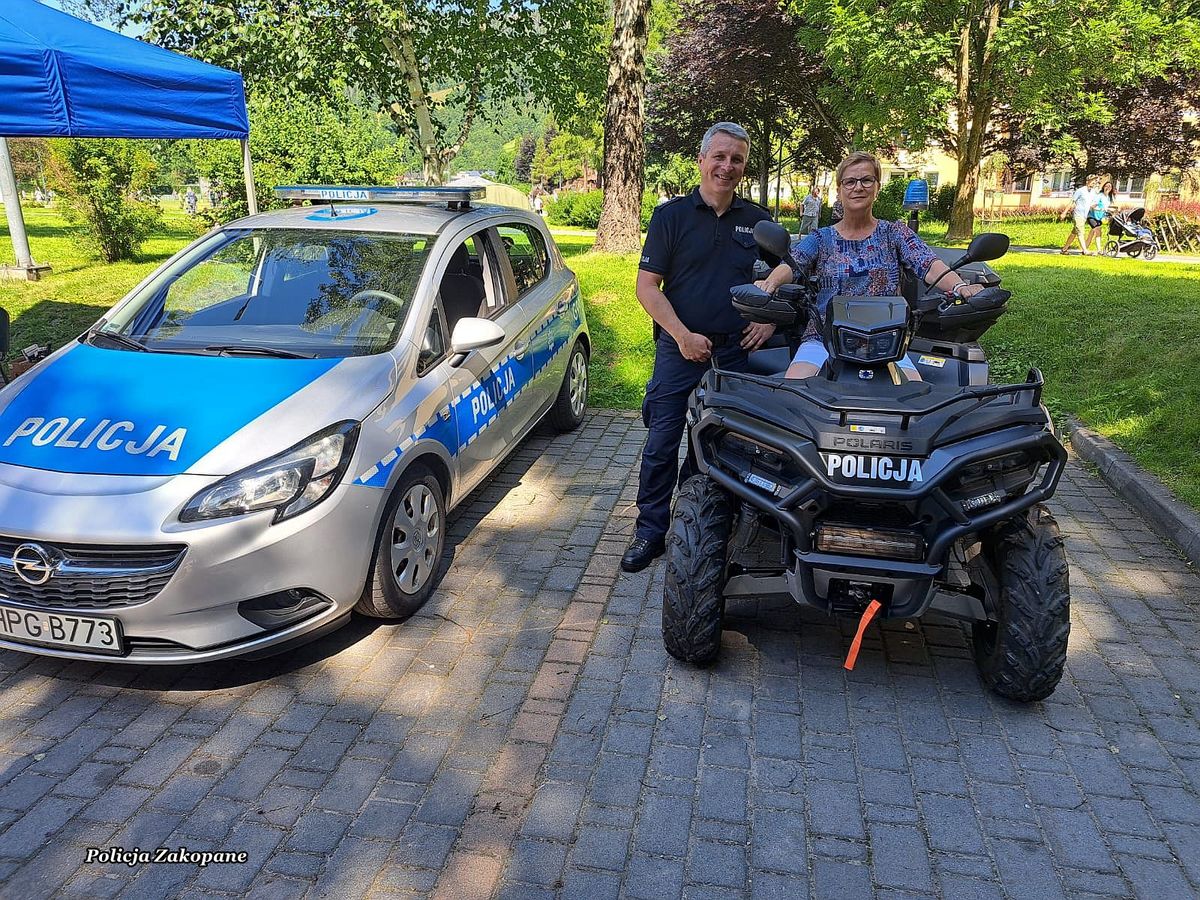 Policjanci przygotowali stanowisko z policyjnym wyposażeniem wykorzystywanym przez mundurowych w czasie służb, a także radiowóz, motocykl i pojazd typu quad, na które każde z dzieci mogło usiąść i włączyć sygnały świetlne i dźwiękowe. Dzieci i dorośli całymi grupami przychodzili do policjantów, aby porozmawiać na temat bezpieczeństwa oraz poznać specyfikę służby. Była to świetna okazja do przypomnienia zasad bezpieczeństwa podczas wypoczynku nad wodą i w górach podczas wakacji. Wśród odwiedzających policyjne stoisko było również wielu dorosłych i seniorów, którym przypomniano jak ważnym jest zabezpieczenie własnego domu na czas wakacyjnych wyjazdów. Przy okazji rozdawano ulotki o możliwych oszustwach np. metodą na wnuczka. Dla młodzieży odwiedzającej policjantów przygotowaliśmy ulotki informacyjne o rekrutacji do służby w policji. Było wiele pytań o możliwość pełnienia służby pod Tatrami. Cieszymy się, że mieliśmy tak wielu miłych gości na naszym stanowisku, którzy chętnie robili sobie pamiątkowe zdjęcia i zadawali wiele istotnych pytań na temat bezpieczeństwa.