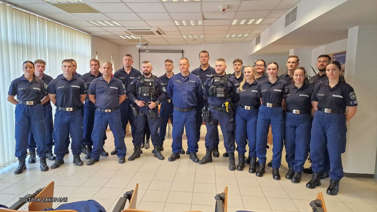 Wrażenie na tatrzańskich policjantach sprawiło profesjonalne umundurowanie młodzieży, wojskowy dryl, godło swojego kraju na ramieniu i jasne plany na przyszłość. Węgierscy kadeci z dumą podkreślali, że przyjechali na Podhale zdobywać kolejne umiejętności oraz wiedzę przed rozpoczęciem regularnej służby w szeregach węgierskiej policji. Dzisiejsza wizyta kadetów rozpoczęła się od przedstawienia zadań, z jakimi mierzą się każdego dnia tatrzańscy policjanci oraz jak wygląda służba w tym wybitnie turystycznym regionie Polski. Kadeci poznali strukturę organizacyjną Policji oraz charakter pełnienia służby w poszczególnych wydziałach. Młodzież mogła zobaczyć, jak pracują policjanci na kluczowych stanowiskach zakopiańskiej komendy oraz dowiedzieć się o charakterze realizowanych zadań. Później kadeci spotkali się z policjantami Ogniwa Patrolowo Interwencyjnego, którzy zaprezentowali swoje wyposażenie do służby oraz opowiadali, z jakimi interwencjami najczęściej spotykają się w sezonie turystycznym pod Tatrami. Jeden z opiekunów grupy wcielił się w rolę pozoranta, a tatrzańscy policjanci krok po kruku opowiadali kadetom o taktyce przeprowadzenia wobec niego interwencji równocześnie prezentując swój wysoki poziom wyszkolenia i umiejętności. Po krótkim pokazie było mnóstwo pytań, porównań do rzeczywistości w ich rodzimym kraju. Na koniec kadeci i opiekunowie dowiedzieli się jak wygląda procedura przyjęcia do służby i poszczególne etapy postępowania kwalifikacyjnego, a także, jakie wymogi formalne musi spełniać kandydat do służby w polskiej Policji. Kadeci z Miszkolca będą przebywali pod Tatrami jeszcze jakiś czas, więc zapewne jeszcze o nich usłyszymy. A wszystkich chętnych do wstąpienia w szeregi tatrzańskiej policji zapraszamy do kontaktu.