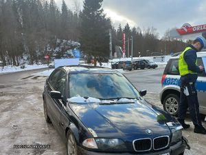 W miniony piątek 2 lutego br. o godzinie 13 patrol zakopiańskiej drogówki został skierowany na miejsce kolizji w Bukowinie Tatrzańskiej, gdzie sprawca najprawdopodobniej pijany kierowca miał odjechać w stronę Białki tatrzańskiej. Policjanci natychmiast ruszyli we wskazanym kierunku i już po pięciu minutach w rejonie stacji paliw zatrzymali BMW kierowane przez 26-letniego kierowcę z powiatu tatrzańskiego. Samochód nosił bardzo wyraźne ślady po kolizji z innym pojazdem. Kierowcę policjanci musieli siłą wyprowadzić z za kierownicy. Badanie alkomatem potwierdziło przypuszczenia świadków kolizji. Blisko 3.2 promila alkoholu w organizmie 26-letniego kierowcy wskazało urządzenie pomiarowe. Jak się okazało, to nie pierwsze takie przestępstwo tego 26-latka. Kilka lat wcześniej stracił prawo jazdy za jazdę po alkoholu. Nowe prawo jazdy już zostało zatrzymane przez policjantów zakopiańskiej drogówki, a 26-latek trafił do policyjnej izby zatrzymań celem wytrzeźwienia. Kierowcy grozi do 2 lat więzienia.