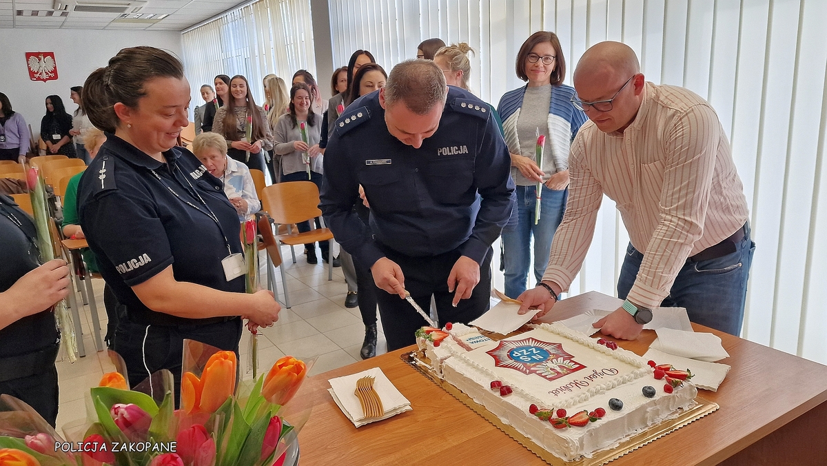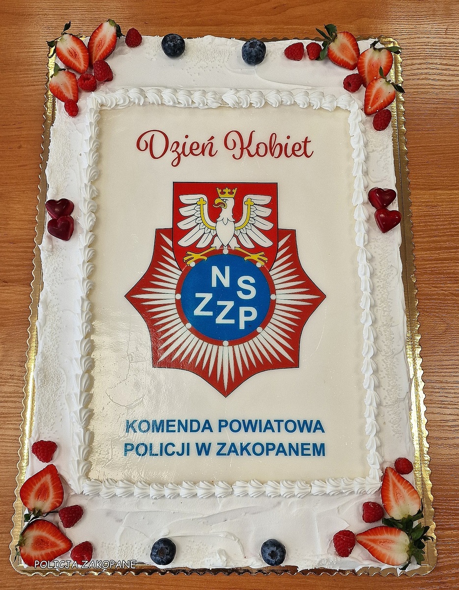 Panowie z Komendy Powiatowej Policji w Zakopanem, dzisiaj popołudniu zorganizowali dla wszystkich pań z tatrzańskiej policji wymarzony Dzień Kobiet. Piękniejsza strona zakopiańskiej komendy została zaproszona na salę narad, gdzie z okazji święta kobiet złożył najlepsze życzenia z-ca Komendanta Powiatowego Policji w Zakopanem nadkomisarz Wojciech Kierzyk. Kobiety obdarowane zostały kwiatami oraz pysznymi pralinami. Był również wspaniały tort z dedykacją dla pań od Przewodniczącego NSZZP. Nie zabrakło wielu miłych komentarzy, ponieważ udało nam się ponownie nasze panie mile zaskoczyć.