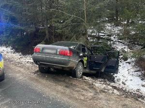 Funkcjonariusze z Bukowiny Tatrzańskiej pełniąc służbę w niedzielne przedpołudnie zauważyli osobowe audi, którego kierowca wykonał manewr wyprzedzania przekraczając podwójną linię ciągłą. Policjanci postanowili zainterweniować w związku z popełnionym wykroczeniem. Wezwali kierowcę audi do zatrzymania się używając sygnałów świetlnych i dźwiękowych. Reakcja kierowcy była odwrotna. Przyspieszył i zaczął uciekać przed oznakowanym radiowozem. Po chwili pościg zakończył się, kiedy kierowca audi stracił panowanie nad pojazdem odbił się od citroena i wpadł do rowu. Policjanci zatrzymali kierowcę i dwoje pasażerów. Podczas kontroli drogowej okazało się, że ,,kierowcą’’ był 16-latek z powiatu tatrzańskiego nieposiadający uprawnień, do prowadzenia pojazdów. Nieletni kierujący i jego nieletni pasażerowie zostali przekazani rodzicom. Policjanci przekażą ich sprawę do sądu rodzinnego.