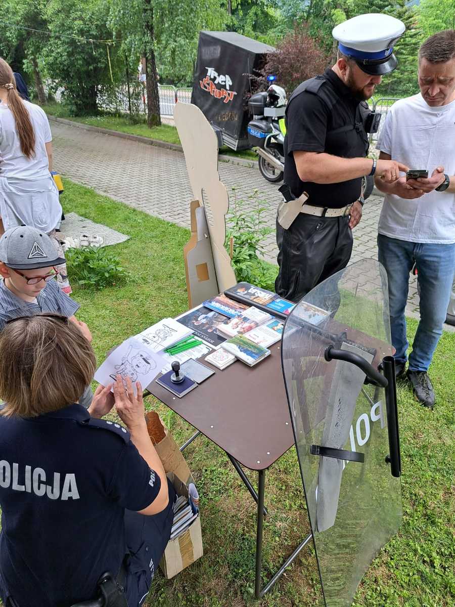 Wczoraj tj. (06.06.2024) tatrzańscy policjanci odpowiedzieli na zaproszenie Szkoły Podstawowej nr 1 w Zakopanem do udziału w szkolnym Dniu Dziecka. Dzięki temu uczniowie mieli okazję zapoznać się z wyposażeniem służbowym funkcjonariuszy, usiąść w radiowozie i na motorze, a także porozmawiać z policjantami o ich pracy. Dzieci chętnie korzystały z wszystkich atrakcji i brały udział w mini-konkursach o bezpieczeństwie. Uczniowie całymi grupami przychodzili do policjantów, aby porozmawiać na temat bezpieczeństwa. Każda osoba, która rozwiązała krzyżówki na temat bezpieczeństwa lub rebusy na temat cyberzagrożeń otrzymywała specjalny upominek. Wszystkim pociechom z okazji ich święta życzymy jeszcze raz wszystkiego co najlepszego, a przede wszystkim by byli zawsze bezpieczni.