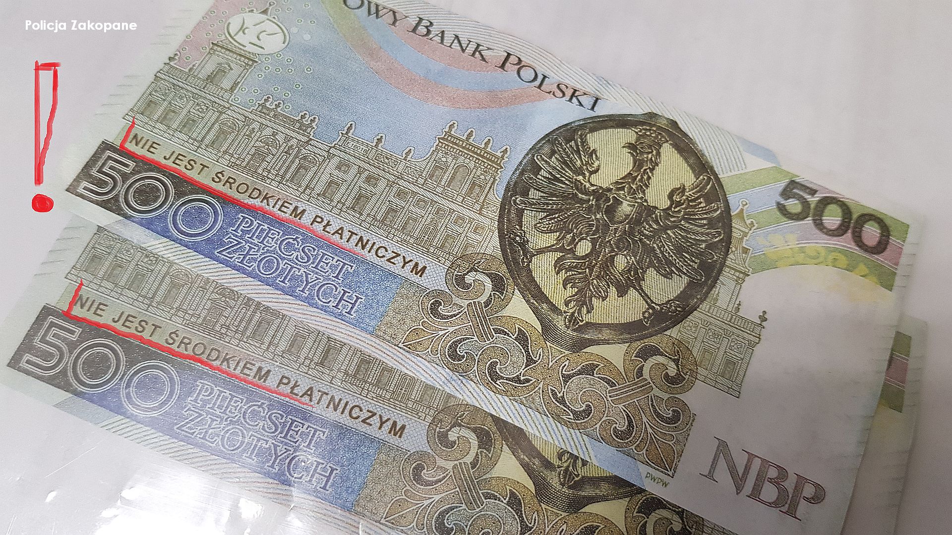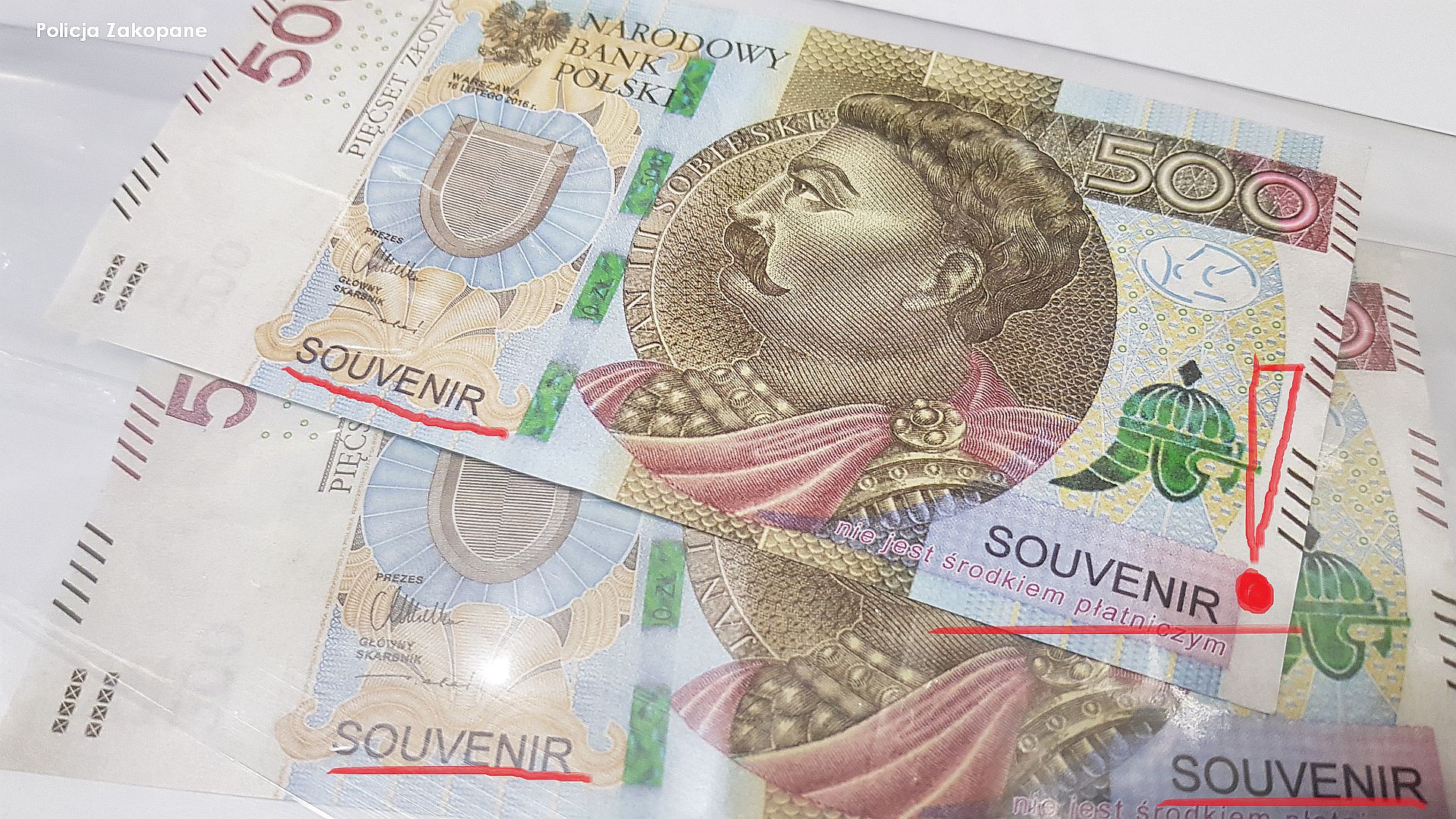 Tatrzańscy Policjanci prowadzą czynności w sprawie oszustwa dokonanego w jednym z zakopiańskich sklepów. Sprawcy za zakupioną odzież zapłacili dwoma banknotami kolekcjonerskimi o nominale 500 zł. Sprzedawca przyjął „zabawkowe” pieniądze, lecz straty okazały się realne i prawdziwe.