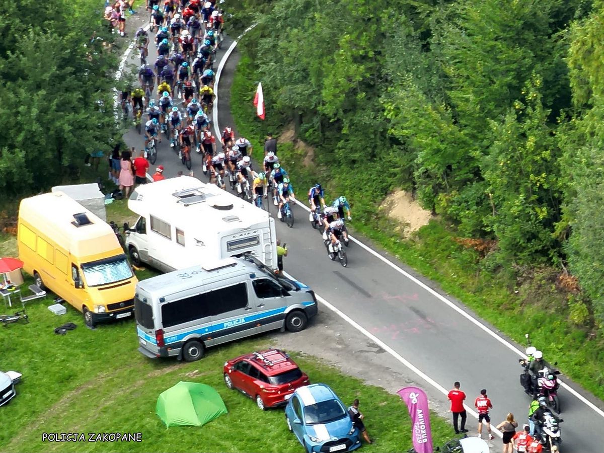 W miniony weekend powiat tatrzański ponownie stał się stolicą światowego kolarstwa. Na całej długości trasy, biegnącej przez nasz powiat, kolarzy dopingowali licznie zebrani mieszkańcy, kibice i tysiące turystów odpoczywających w naszym regionie. W tym wielkim sportowym święcie uczestniczyli również tatrzańscy i małopolscy policjanci, którzy czuwali nad bezpieczeństwem wyścigu. Policjanci w radiowozach i na motocyklach prowadzili peleton. Ponadto mundurowi rozstawieni na trasach V i VI etapu pilnowali porządku na ulicach i skrzyżowaniach, przez które biegła trasa kolarskiego wyścigu. W akcji zabezpieczenia kolarskich zmagań podczas 82. Tour de Pologne na drogach powiatu tatrzańskiego uczestniczyło 61 funkcjonariuszy. Policjanci z ruchu drogowego, prewencji, a także innych wydziałów zakopiańskiej komendy i komisariatów wspierani byli przez policjantów z komendy wojewódzkiej policji w Krakowie oraz garnizonu małopolskiego. Policjantów także wspierało wielu tatrzańskich strażaków oraz wolontariusze. Podczas zabezpieczenia nie odnotowaliśmy poważniejszych zdarzeń, a dzięki właściwej organizacji zabezpieczenia wyścig kolarski w powiecie tatrzańskim przebiegł bez zakłóceń.