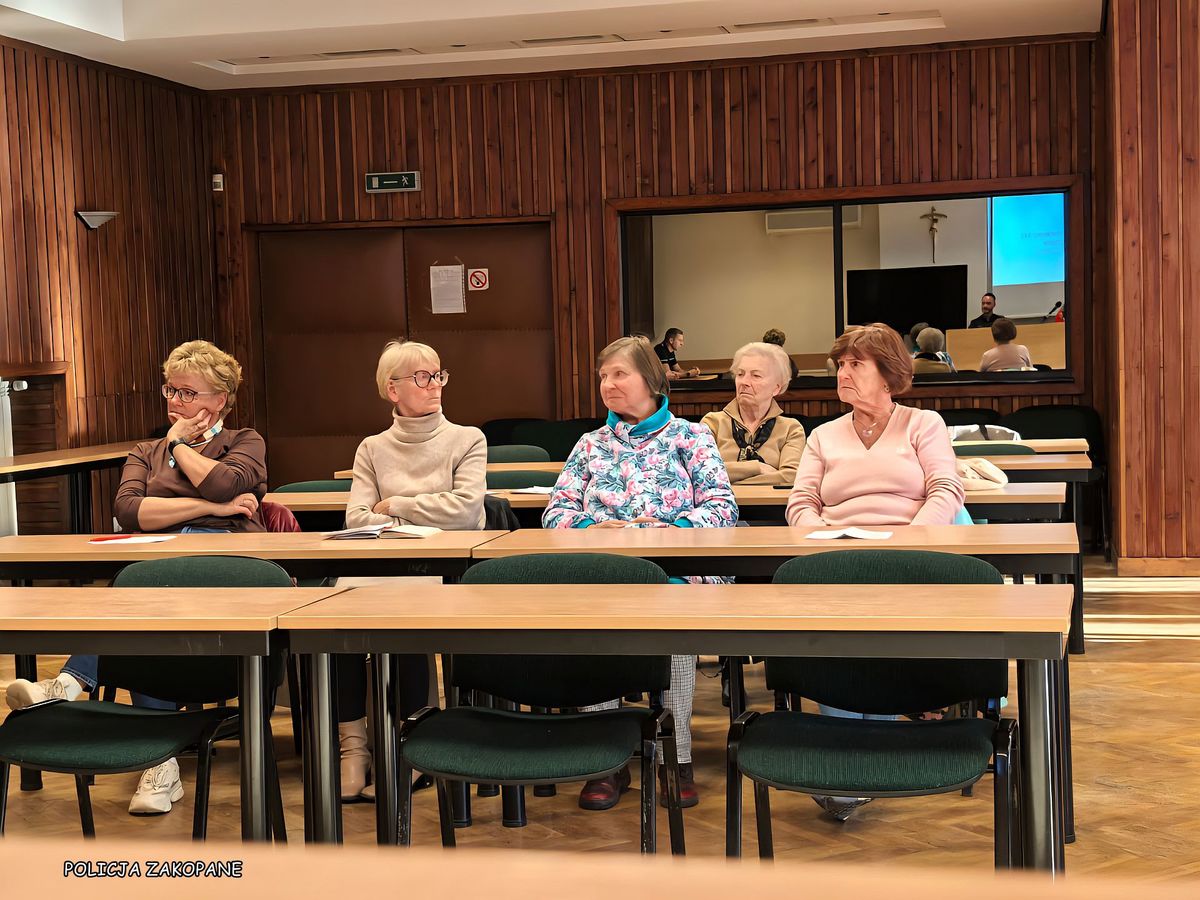 Policjanci z Komendy Powiatowej Policji w Zakopanem spotkali się z seniorami w zakopiańskim magistracie. Przemoc domowa wobec osób starszych oraz przestępstwa metodą „na wnuczka, na wypadek czy oszustwa za pomocą kodów BLIK”, to tylko część z tematów, jakie zostały omówione w trakcie wydarzenia. Spotkanie było jednym z wielu przedsięwzięć, jakie podejmują tatrzańscy policjanci na rzecz bezpieczeństwa seniorów.