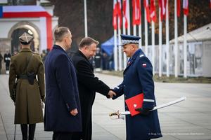 Dzisiaj, w trakcie obchodów Narodowego Święta Niepodległości na placu Marszałka Józefa Piłsudskiego w Warszawie, Komendant Wojewódzki Policji w Krakowie Artur Bednarek otrzymał akt mianowania na stopień nadinspektora z rąk Prezydenta Rzeczypospolitej Polskiej Karola Nawrockiego w asyście Ministra Spraw Wewnętrznych i Administracji Marcina Kierwińskiego.