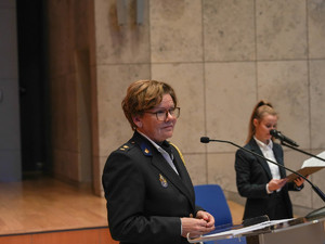 Gościem specjalnym dzisiejszej konferencji była pani Anja de Bruin Zastępca Komendanta Policji w Hadze, która zaprezentowała historię Policji holenderskiej, jak również odniosła się do czasów obecnych, gdzie kobiety na równi z mężczyznami pełnią funkcje kierownicze. Wyświetlony został film pokazujący służbę holenderskich policjantów.