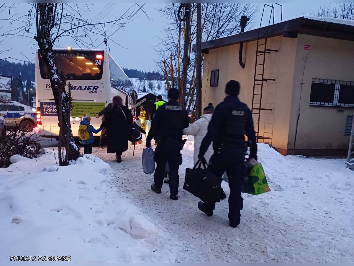 Po tragicznym wypadku na stacji kolejowej w Białym Dunajcu, Policjanci pomagali blisko 670 pasażerom pociągu relacji Zakopane - Gdynia przesiąść się do podstawionych przez przewoźnika autokarów. Policjanci usprawniali również ruch na zakopiance w związku z powrotami po świętach.