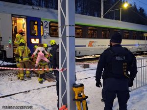 Wczoraj tj. 6 stycznia br. ok. godz. 14.00 w Białym Dunajcu w rejonie stacji PKP nieznana osoba została potrącona przez pociąg relacji Zakopane-Gdynia. Pociąg przejeżdżał przez stację w Białym Dunajcu bez planowanego zatrzymywania się z prędkością ok. 90 km/godz. Jak ustalili policjanci, maszynista dawał sygnał, ale niestety doszło do potrącenia człowieka. Śledczy prowadzili czynności na miejscu wypadku. Policjanci zabezpieczyli zapis kamer z lokomotywy oraz z budynku stacji. Wszystkie czynności na miejscu wypadku nadzorował prokurator, a działaniem służb dowodził Komendant Powiatowy Policji w Zakopanem. W pociągu jechało ok. 650 pasażerów. Nikomu na szczęście nic się nie stało. Linia do zakończenia czynności przez śledczych była całkowicie zablokowana. Z tego powodu zorganizowano komunikację zastępczą dla pasażerów. Policjanci i strażacy pomagali pasażerom pociągu w ewakuacji do podstawionych autokarów. Ponadto policjanci zakopiańskiej drogówki kierowali ruchem na K-47 popularnej zakopiance, aby powroty z długiego świątecznego weekendu odbywały się sprawnie. O g.17.05 zakończyła się ewakuacja pasażerów pociągu do autokarów, które odjechały z nimi do Nowego Targu. Chwilę później zakończyły się czynności procesowe i ruch kolejowy został wznowiony. Niestety nadal nie zidentyfikowano ofiary. Śledztwo w sprawie tragicznego wypadku będzie miało za zadanie wyjaśnienie wszelkich okoliczności tego zdarzenia i ustalenia tożsamości osoby.