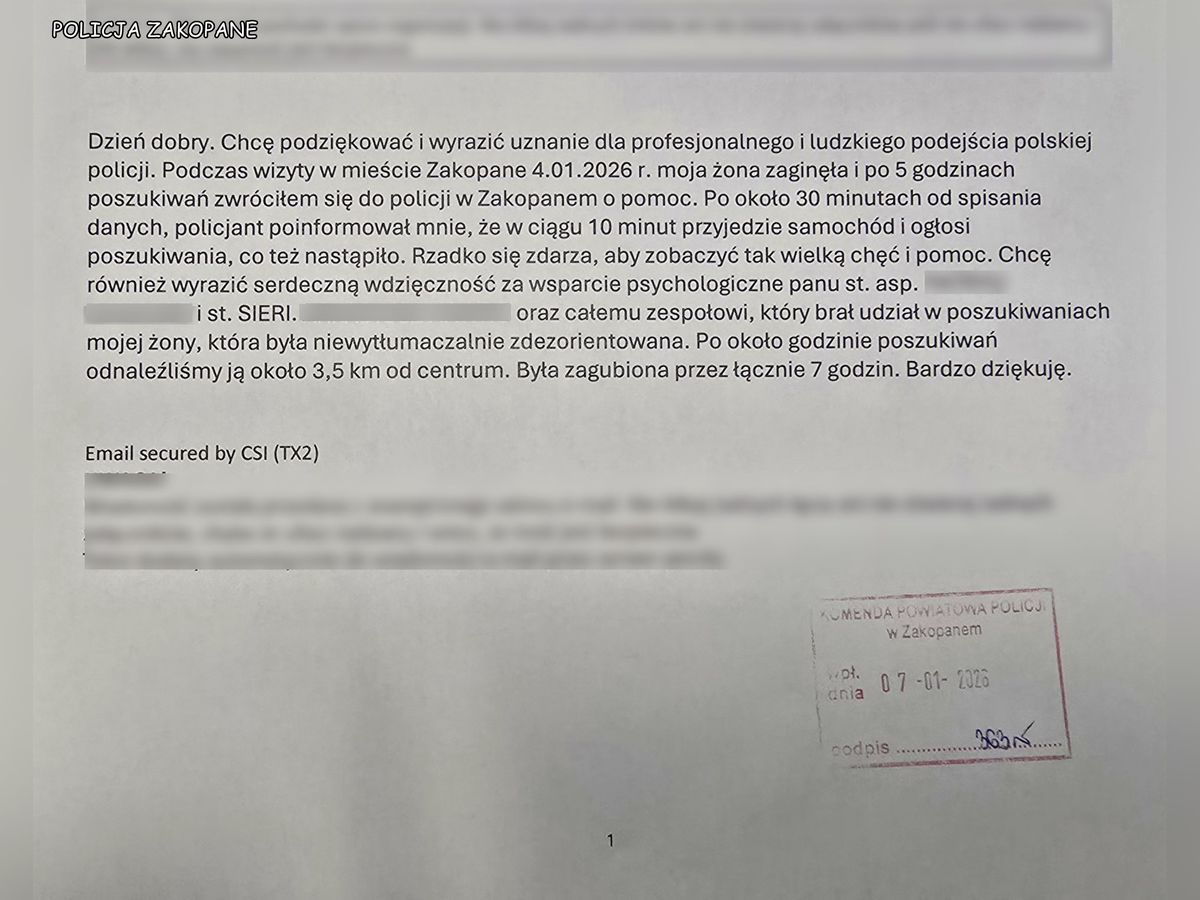 Każdy policjant wykonuje swoje obowiązki z bezinteresownym zaangażowaniem. Naszym priorytetem jest pomagać i chronić każde życie. Miło jest usłyszeć słowa uznania po wykonanej służbie – za które dziękujemy. Słowa wdzięczności od turystów i mieszkańców dodają nam sił i motywują do dalszej służby. Jest nam bardzo miło, że nasza służba zostaje doceniona, a podziękowania od obywateli są najlepszą motywacja do dalszej pracy i pomocy turystom oraz mieszkańcom naszego regionu.