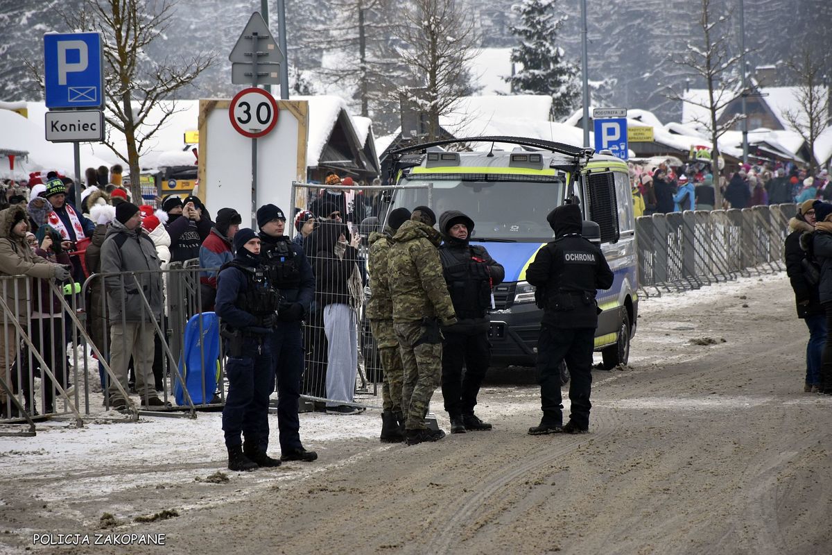 Małopolska Policja dba o porządek publiczny i bezpieczeństwo podczas Pucharu Świata w Skokach Narciarskich na Wielkiej Krokwi w Zakopanem. Policjanci prewencji, ruchu drogowego oraz służb kryminalnych będą reagowali na wszelkie zgłoszenia oraz będą pomagali kibicom bezpiecznie i bez przeszkód wrócić do domów, pilnując, aby nie doszło do zakłóceń porządku. Tego dnia w policyjnym zabezpieczeniu bierze udział blisko 200 policjantów. Pierwszy dzień konkursowy 10.01.2026 roku (sobota) to konkurs Super Team w skokach narciarskich. Bramy skoczni otwarte zostały już o godzinie 11.30. Konkurs ma rozpocząć się o godzinie 16.15. Na razie kibiców jest niewielu (ponad 2000 osób), ale obserwujemy napływ osób zmierzających z kierunku centrum miasta. Policjanci zabezpieczają teren wokół Wielkiej Krokwi i drogi dojazdowe. Przypominamy, że nastąpiło czasowe zamknięcie ulic wokół skoczni.