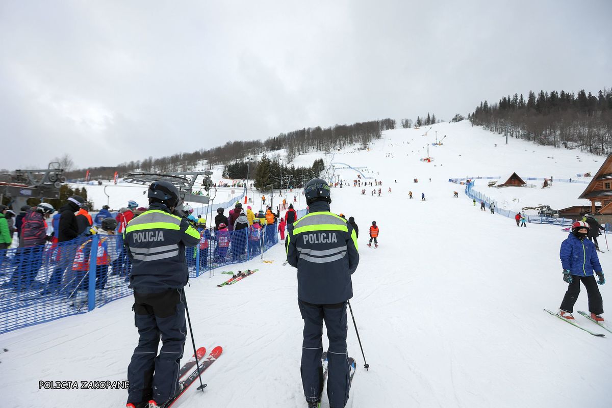 Jeszcze przed feriami zimowymi policjanci interweniowali na stokach narciarskich w związku ze zdarzeniami, do których tam dochodziło. Najczęściej zgłoszenia jakie odbieramy dotyczą zdarzeń i kolizji narciarzy na stoku. Niektórzy narciarze żądają interwencji, aby móc dochodzić później swoich roszczeń i odszkodowań. Na szczęście nie odnotowaliśmy poważnych wypadków. Policjanci interweniują również wobec osób, które pod znacznym wpływem alkoholu decydują się na jazdę na nartach. W kilku przypadkach sprawy kończyły się pouczeniem i wyproszeniem takiej osoby ze stoku przez obsługę wyciągu. Kolejny obszar interwencji to drobne kradzieże sprzętu narciarskiego. Pojedyncze zgłoszenia odnotowujemy niemal w całym powiecie tatrzańskim. Część z tych spraw wyjaśnia się już następnego dnia, kiedy to okazuje się, że narty przez przypadek zostały podmienione i oddane nie do tej wypożyczalni co trzeba. Dochodzi również do drobnych kłótni i sporów o niszczenie sprzętu poprzez najechanie na czyjeś narty lub deskę. Policjanci z patroli narciarskich cały czas zwracają uwagę na bezpieczeństwo osób odpoczywających na stoku a zwłaszcza na najmłodszych przypominając im o konieczności jazdy w kasku ochronnym.