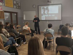 Wczoraj tj. 5 marca br., Komendant Powiatowy Policji w Zakopanem inspektor Robert Chowaniec, wspólnie z funkcjonariuszami zakopiańskiej komendy, spotkał się z uczniami klas maturalnych Zespołu Szkół Mistrzostwa Sportowego w Zakopanem, zachęcając ich do wstąpienia w szeregi Policji. Podczas spotkania z młodzieżą, komendant przedstawił i opisał wszystkie rodzaje służb występujące w tej formacji mundurowej, podkreślając specyfikację oraz zalety każdej z nich. Insp. Robert Chowaniec, podkreślił jak ważna w obecnych czasach jest kwestia bezpieczeństwa, w tym bezpieczeństwo wewnętrzne kraju. Podkreślono zalety rozwoju jakim niewątpliwie jest możliwość awansu, kształcenia się, zdobywania doświadczenia. Komendant przedstawił proces rekrutacji podkreślając, że każdy młody człowiek posiadający wykształcenie średnie może ubiegać się o wstąpienie do służby w Policji. Omówiono również warunki finansowe oferowane policjantom, w tym strukturę wynagrodzenia, dodatkowe świadczenia, a także możliwości rozwoju zawodowego. Wynagrodzenie początkowe to od 6.339 zł do 7.442 zł (uposażenie zasadnicze + dodatek za stopień posterunkowy). W trakcie kursu podstawowego kursant otrzymuje od 5.913 zł do 6.561 zł.