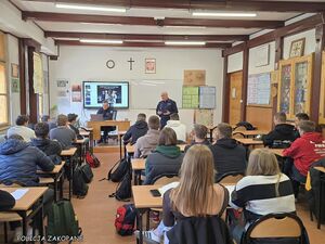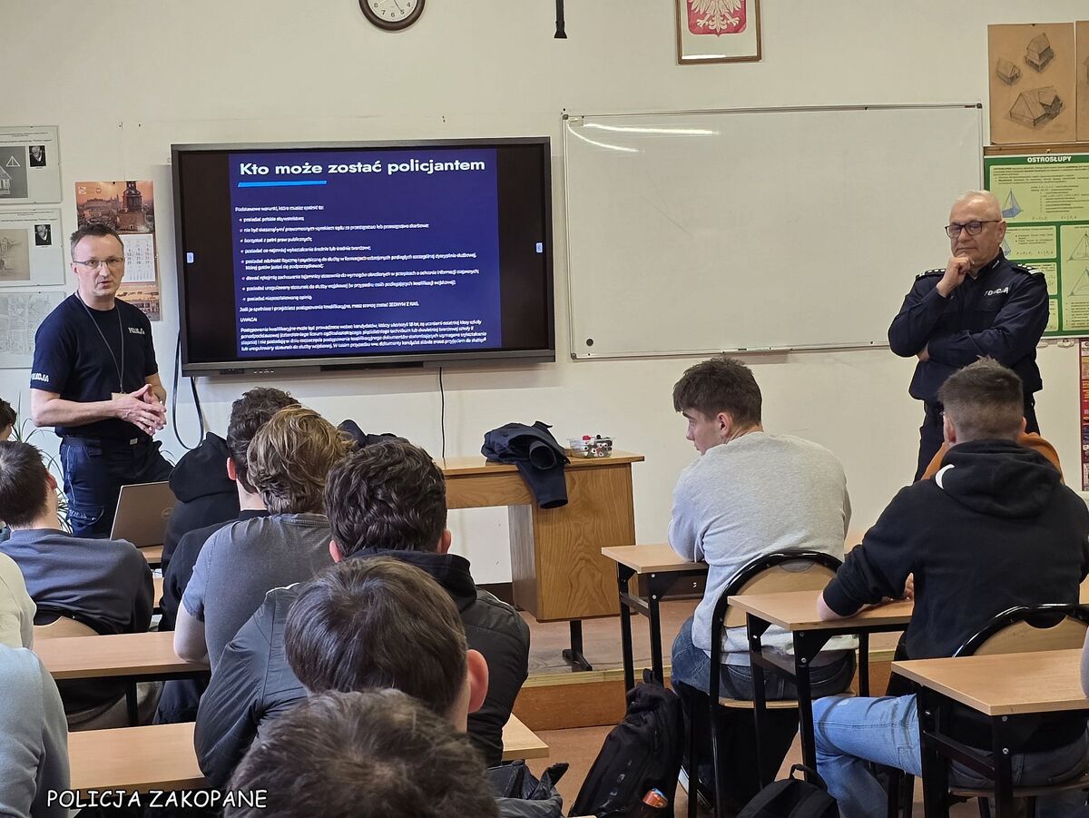 Wczoraj w Zespole Szkół im. dra Władysława Matlakowskiego w Zakopanem w Zakopanem odbyło się spotkanie uczniów klas maturalnych z Komendantem Powiatowym Policji w Zakopanem inspektorem Robertem Chowańcem. Wydarzenie zostało zorganizowane w ramach działań promujących służbę w Policji oraz przybliżających młodzieży specyfikę tej formacji.