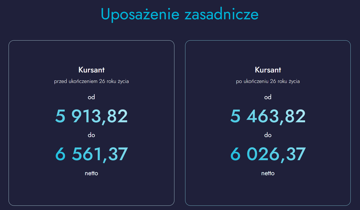 Omówiono również warunki finansowe oferowane policjantom, w tym strukturę wynagrodzenia, dodatkowe świadczenia, a także możliwości rozwoju zawodowego. Wynagrodzenie początkowe to od 6.339 zł do 7.442 zł (uposażenie zasadnicze + dodatek za stopień posterunkowy). W trakcie kursu podstawowego kursant otrzymuje od 5.913 zł do 6.561 zł.