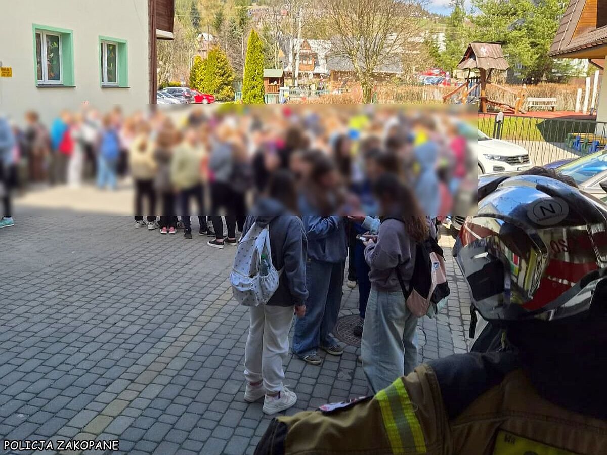 Błyskawiczna akcja policjantów i strażaków zakończona udaną ewakuacją 221 dzieci oraz 35 nauczycieli i personelu z terenu szkoły podstawowej w Kościelisku. Zadymienie pojawiło się w podziemiu sali gimnastycznej przy rozdzielni instalacji fotowoltaicznej. Po sprawdzeniu nie znaleziono źródła ognia. Nikt w zdarzeniu nie ucierpiał.