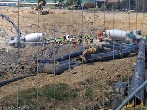 Dzisiaj ok. g. 11.30 otrzymaliśmy zgłoszenie o wypadku podczas prac ziemnych w Zakopanem przy ul. Powstańców Śląskich. Ze zgłoszenia wynikało, że młody mężczyzna pracujący przy wylewaniu betonu w wykopie z nieznanych na obecną chwilę przyczyn znalazł się pomiędzy żurawiem, a betoniarką, która najechała na poszkodowanego. Do działań ratunkowych natychmiast włączyli się policjanci oraz strażacy. Poszkodowany z licznymi obrażeniami ciała jest obecnie pod opieką ratowników. Na miejsce zadysponowano LPR gdyż życie poszkodowanego jest zagrożone. Na miejscu wypadku pracują policyjni śledczy, którzy ustalają wszelkie okoliczności i przyczyny tego zdarzenia. Powiadomiliśmy również Prokuraturę i Państwową Inspekcję Pracy, która podejmie działania w zakresie swoich uprawnień. Kierujący betoniarką w chwili zdarzenia był trzeźwy.